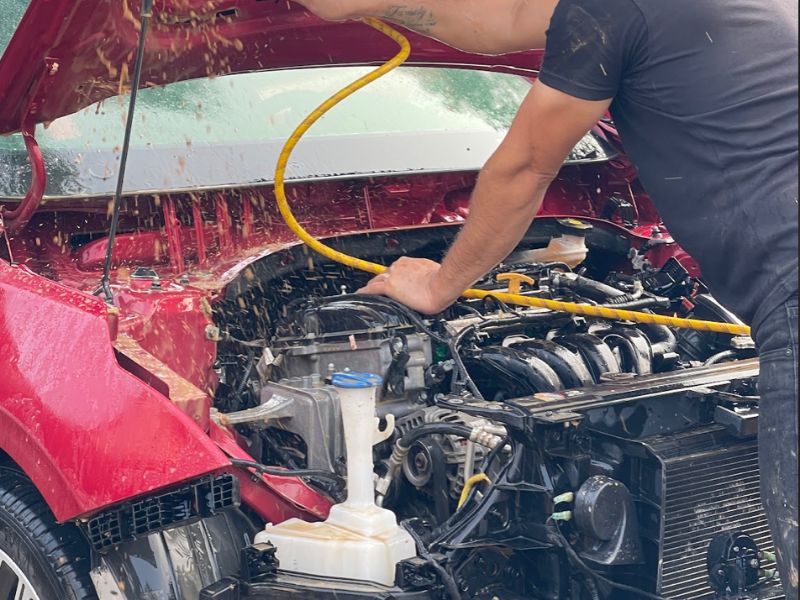 Khi bảo dưỡng ô tô sau mưa bão, bạn cần rửa xe sạch sẽ cả ngoại thất, gầm xe và khoang máy, đồng thời kiểm tra các bộ phận quan